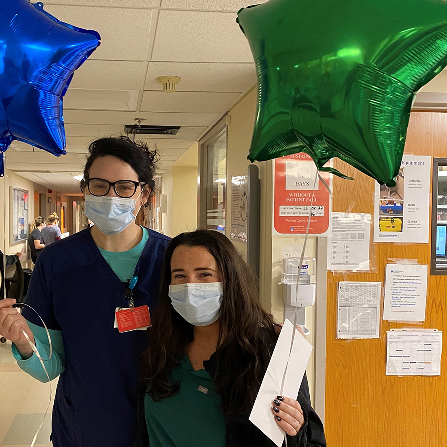 Brigham and Women’s Faulkner Hospital’s I CARE Award recognizes staff members from all areas of the hospital who go above and beyond their regular job responsibilities to make BWFH a great place to work and receive care. 7 North Clinical Leader Tracy Lane, MSN, RN, MEDSURG-BC, and staff nurse Darcy Fisher, BSN, RN, were recent recipients of I CARE Awards.