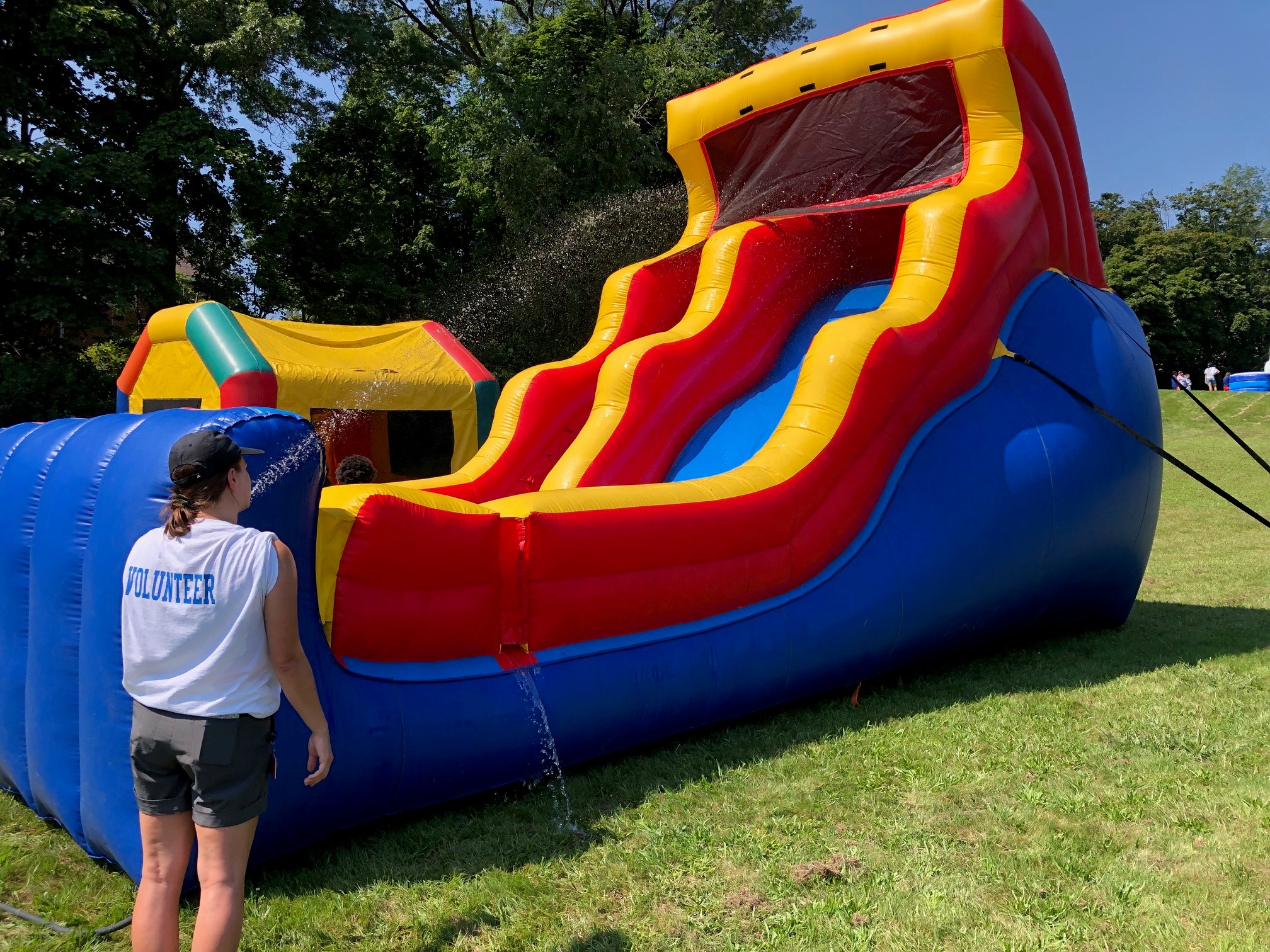 Community Health Program Coordinator Katie Plante prepares an inflatable slide for a day of fun