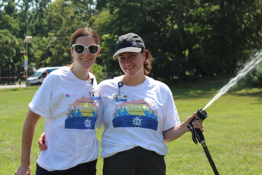 Brigham and Women’s Faulkner Hospital, a neighbor and supporter of the Italian Home, helped to make the day special for the children by donating hot dogs and hamburgers for the cookout. The hospital also gave the gift of time. “Our Emerging Leaders Committee believes strongly in making an impact in our community,” says Community Health Program Coordinator and Emerging Leaders Committee Chair Katie Plante. “We were very happy to volunteer our time to help set up for the event and run some of the activities.”