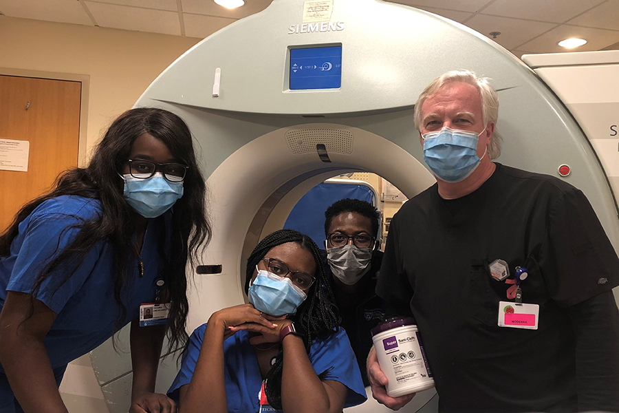 From Left: Victoria Lino Alvarez, CT Coordinator, Richardson Douesius, RT(R)(CT)(ARRT), Technologist, Richard Schofield, RT(R)(CT)(ARRT), Technologist, and Yviolene Pierre, RT(R)(ARRT), Technologist