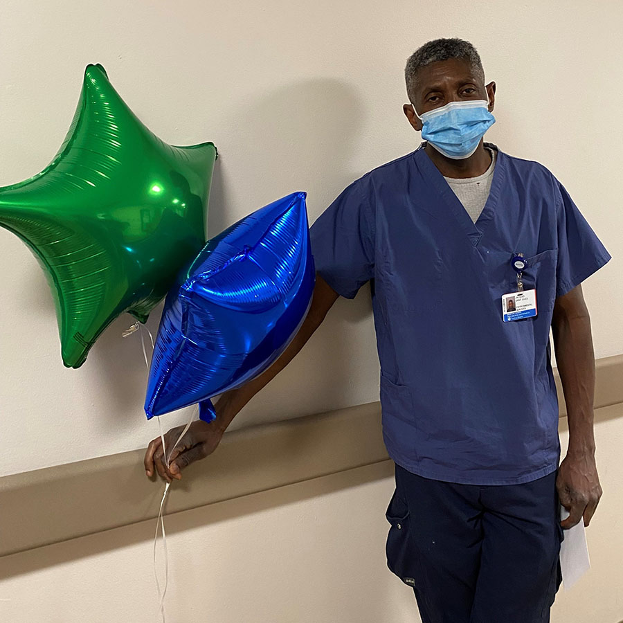 Brigham and Women’s Faulkner Hospital’s I CARE Award recognizes staff members from all areas of the hospital who go above and beyond their regular job responsibilities to make BWFH a great place to work and receive care. Housekeeper Jacques Saint Jules was a recent recipient of an I CARE Award.